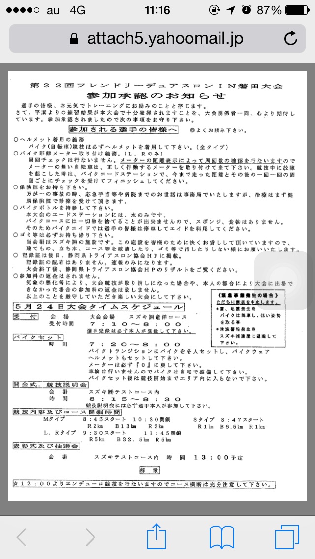 フレンドリーデュアスロン参加承認の知らせが届きました。